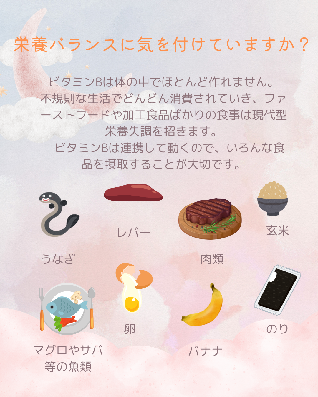 体の代謝に関係するビタミンB