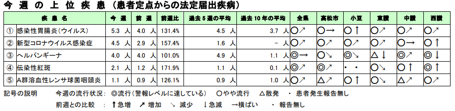香川県の感染症発生状況(2025年8月4日~8月10日)