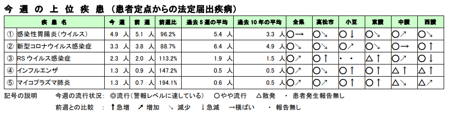 香川県の感染症発生状況(2025年10月6日~10月12日)