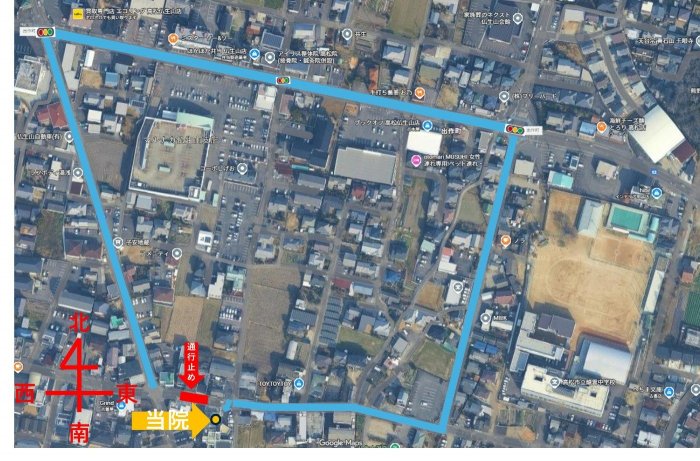 お車でご来院の際は、添付の地図をご参照のうえ迂回をお願いいたします。
